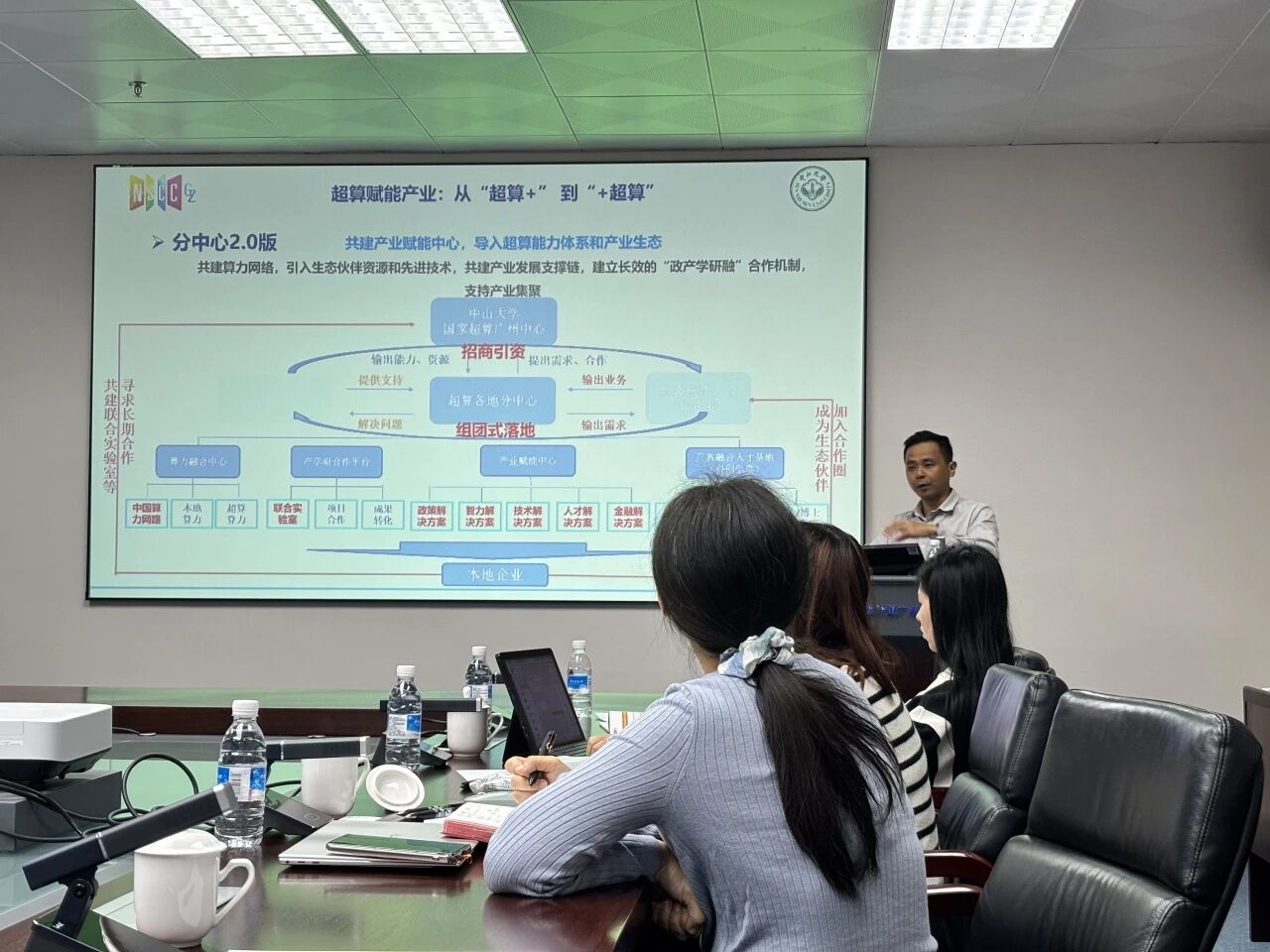 活动伊始,参会代表们在中心进行了深入的座谈交流。李主任详细介绍了作为国家级战略平台,中心如何利用“天河”系列等全球领先的算力资源,为人工智能、生物医药等前沿领域的早期项目提供技术可行性验证、商业化评估及产业资源对接等关键支持,致力于打通科技成果转化的“最初一公里”。座谈中,双方还就算力服务、低碳园区建设、产业赋能等共同关心的话题展开了热烈讨论。